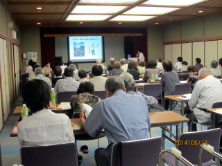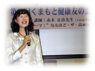 | 上野美恵子会長の挨拶 定期総会では昨年度の報告と決算、今年度の方針と予算などが報告されました。詳細は次回友の会だよりをご覧ください | 記念講演は くわみず病院診療部長 赤木正彦先生の「なるほど・ざ・高血圧」クイズを交えて楽しく学びました、 | ||