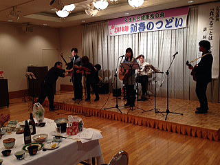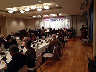 午前中はくわみず病院 福原先生の「食べることは生きること」嚥下についての学習会をしました。 ーーーーーー 午後はごちそうを食べながら、熊本マンドリン協会の皆様の演奏・くわみず病院の医師・看護師・ケースワーカー・事務の各職メンバーで作るくわバンドの演奏などを楽しみました。 |