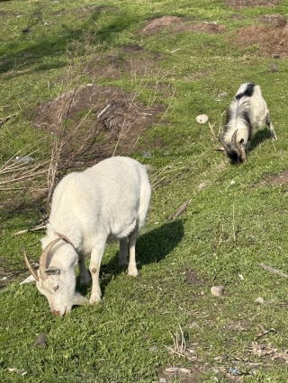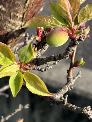 | 2025/04/04金 | 昨年1個も実にならなかった我が家の庭の梅の木に少ないながら実が付いていることに安心。これから風雨に耐えて立派な梅になることを願っている。ただこの木の隣の白梅の実は全然付いていない。こちらは心配だが、自然はちゃんと時間に従って動いている。あとは任せたばい。/散歩の途上に、いつも草を食む山羊をみかけるが、今日も声かけしたら30cmほど近づいて草を食べ続けていた。怖がらないだけでも前進だ。木部公園の桜は満開状態がずっと続いている。東京は桜満開の発表・・今日の歩きは5635歩。 |