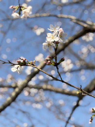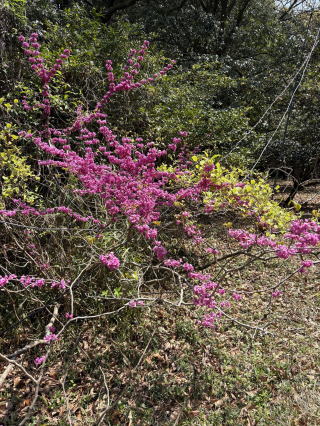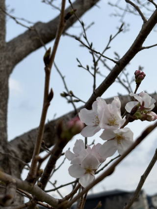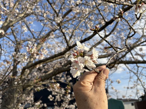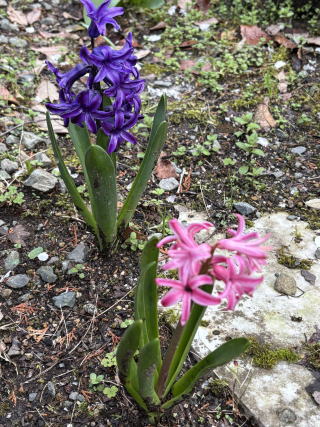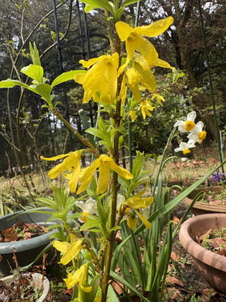| 2025/03/24月 | 山小屋の庭は春爛漫。植えた覚えのない花があって、検索して調べてみたら「志那レンギョ」だって・・鳥が種を咥えてきたのだろうか。ヒヤシンスも紫の花を咲かせていて、ピンクはまだ少し先に咲きそうだ。今日の天気は昼頃に雨に、1時間くらいすると青空が出てきて、お客様が車に乗り込もうと走り出したときが一番の雨量だったみたい、車が出たあと小降りになって、その後すっかり快晴に。あらまあって感じだ。お客様送り出したあと店内片付けが済んで午後2時半に下山。途上の益城では桜が開花してわくわくした。 |