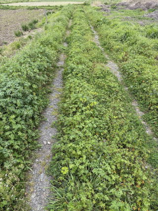 | 2025/04/12土 | 今日は午前中にご主人様へ洗濯物届けにいく。午後から雨という予報だったので、病院に到着して正面玄関にまわると、締め切ってある。裏に回ってくださいとあって、ぐるんぐるんと緊急入り口へ。我が家へ帰宅途上に買い物。今日の歩数1900歩。午後追加の散歩。実は昨日散歩の最後の団地入り口で 散歩の終わりとホッとした途端に、ニョロニョロといよいよ暖かくなった地上に徘徊に出たところに鉢合わせ!ぎゃあと足早に我が家へ。・・だった。で今日は田園散歩道はこの草原の隙間をあるくが、もしやニョロニョロがここにいたらとぴょんぴょんしながら歩いた。(^^;) |