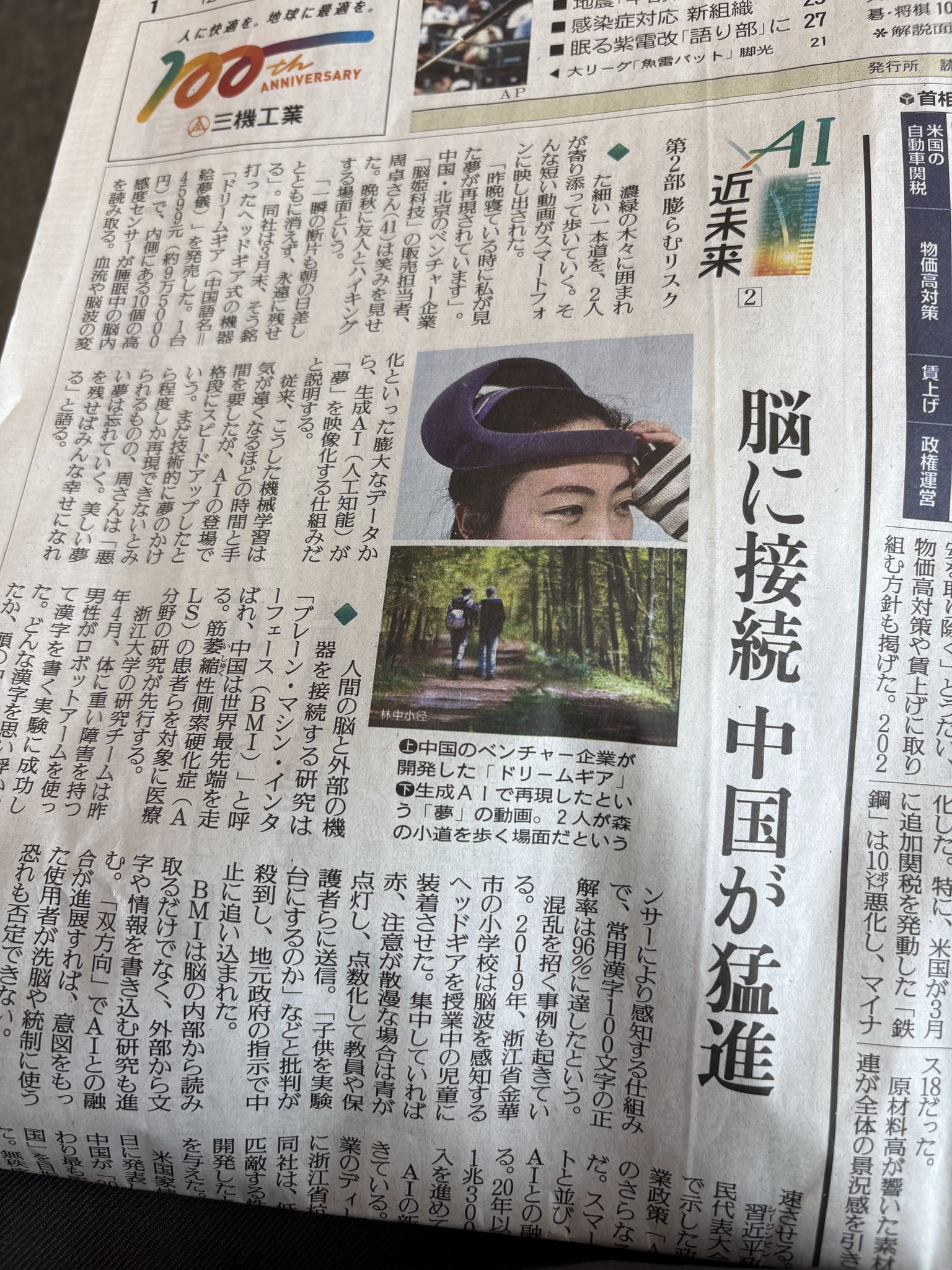 | 2025/04/02水 | 雨の観桜会の翌日の今日は青空で、今日こそ花見日和になった。折角だから交代して欲しかったなあ。我が庭には我が同士木瓜(ボケ)が満開に。まるで椿の花のように咲き誇っている。午前は城南図書館へ本を返して、さらに6冊かりてきた。その新聞コーナで朝日俳壇と読売四季を拝見。櫂さんの健在を確認。というか昨日ショートメールで薔薇の生長具合の問い合わせがあり、応答したばかりだけど。・・その読売の今日の紙面で驚くような記事があった。BMI(brain machine interface)の紹介など・・頭の中の脳みその思いを外へ表示出来る。逆に脳みそを外部から操作する。例えばラジオのスピーカ(出力)がマイク(入力)にもなるのと同じく。実際にみた夢を外部ディスプレイに投影することが出来るという。逆に科学が人を操作したり、政治的に洗脳に使うことだってあろう。怖い時代に差し掛かっている。 |