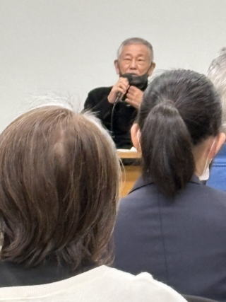 マスクを外した瞬間をパチリ。この人が梶尾真治さんだ。小さな頃から身体を動かすのが大嫌いで、運動嫌い、「体操なんて廃止」という案配のひとで、そこだけは私と一緒だ。そんな幼少期、家にあった本を片っ端から読んだとのこと。それが基礎だったのだろう。さらに年齢を重ねると映画に興味を持ったそうで、それらが小説背景を考える土台になったらしい。オードリーヘップバーンの大ファンらしく、モデルにした作品があるという。私が読んだのは「ゆきずりエマノン」、「壱里島奇譚」、「ダブルトーン」、アラミタマ奇譚」だったろうか・・ショートは6枚、最後のオチが大変とか、そんな1時間半別次元に居た。爺575は”あらまみた 裏に結論 添えるだけ”なんか良く分からないが1時間後は寒い山小屋におった。帰路の風景は嵐だった。 |
