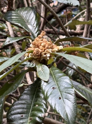 | 2024/12/28土 | 一週間ぶりに山小屋点検へ出掛けた。枇杷の花が咲いていた。この枇杷の木は庭に植えるなという話があるが、ネガティヴキャンペーンの元はお寺さんだったという話も。我が家のビワの実はあまり美味しくなかった。それでも黄色くなるのは楽しみだ。真冬に花が咲くなんてやっぱり変わり者かな。裏のベランダは枯葉で埋まっていて、その枯葉の下は水分たっぷりなので塗装が傷むので足先で枯葉を下に落としていた。一時間くらいかかったが、次に行くときもまた枯葉の山かな。爺575は”我が寝床 冬横たわる いつの間に”寒い時は布団に入るのが一番経済的。年始に山鹿へ行くのでガソリン補給・・いつものところで153円/L |