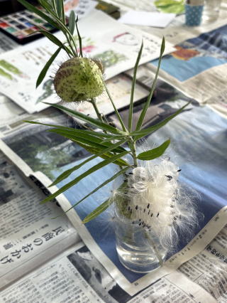 | 2025/01/14火 | 今日は朝は絵手紙、午後は友の会だより発送作業、帰宅後の夜は友の会運営委員会。右の絵手紙は カラスのなる木。田園散歩での冬場は鳥の天国。烏も雀も鴨もいっぱいいる。目の前のモデルのヘンテコな花というか、タンポポの毛のような種。えーと名前は・・フウセントウワタ:風船唐綿(南アフリカ原産) だそう。珍しいキョウチクトウ科の植物らしく毒を持つそうだ。猫には天敵。我が家では育てられない。・・久しぶりの絵手紙というか一ヶ月に1回、この時間にしか筆を取らないので上達するはずもなく。過去の絵手紙が上手に感じる。(^^;)・・なんてことだ!//だよりの4コマのお礼のお菓子を画伯に持参した。次も期限内に4コマをもらうための機嫌取りの甘いモノはビアドパパのシュークリーム。表紙写真のお礼は3月になるかな。 |