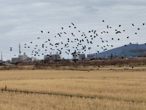 | 2025/01/06月 | 午前中,城南図書館へ本を返しに行き、マルシェで若干の買いもの。生姜の味噌漬けが450円が今年は500円に値上がりしていて残念!。帰宅後BSソヨンドを観たあとに5000歩目指して、田園散歩に出たら・・昨晩雨降っていて道の殆どが水たまりになっていた。さてどこを通ろうかと迷いながら端っこを恐る恐る歩いて通過。カラスのなる木もできていた。//カラスの大群も雨にぬれたのだろうか。鳥の羽毛で温かいとは思うが我が家の猫が炬燵の中で一日過ごすのと違い、冬の過ごし方は毎日大変だろう。 |