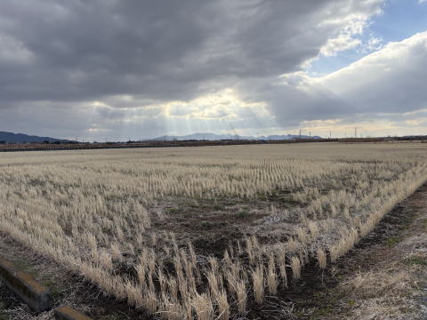 | 2025/01/13月 | 田園から木部公園へ向かう田んぼ道。真夏は草茫々でニョロニョロ怖さにピョンピョン跳んで向かいました。ここには新築住宅が出来ていて、新しく居住される人が多くいます。洪水の時でも壁の高さまでは来ないだろうとの想定で建てらているのだろうと思います。正面向こうには阿蘇の外輪山が天気のよい時には見える。春には桜が奇麗な公園です。//昨日までは10度以下、本日は11度くらいの気温。午後6時半になるとまた冷え込んできた。そろそろ夕飯の準備をしなければと階段を下りようかな。また8時からオンラインでの会議が予定されており、明日は朝、昼、夜とスケジュールいっぱいだ。 |
