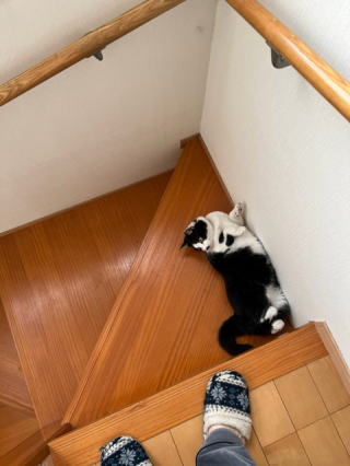 2022/04/17日    昨夜は16日震災本震から6年目だった。夜空にはピンクムーンとか・・そんなメールに誘われて夜空を写真に撮りにベランダへ出たところを猫のハナが瞬間外へ逃げ出した。真夜中の捕り物・・暗くてサッパリ分からないが寝間着に長靴を履いて飛び出した。30分ほどの追いかけっこだったが、元降りた場所へ来たところをご主人様が確保。昨夜は私の不覚だったが、それが今朝は同じベランダに洗濯物を干しに出たところをやられた。今度はご主人様の不覚で朝飯も中途に探しまわった。諦めたころ帰ってきて同じくベランダへの階段を登ったところを左右から狭めながら追い進めて確保。昨夜と今朝の2回の逃走劇に味を占めた久しぶりの野生のハナはいまはコタツの中で熟睡中だ。(17日の午後3時現在)    今日は珍しく二組の予約・・猫騒動といい、まあ朝から大変な一日が開いた。帰るまでハナの行動に注意しなけりゃ・・森の中に入ったら最後、帰ってくる保障はない。木に登ったら降りることは出来ない・・猪突猛進な猫だから目が離せない。写真は今朝の逃走中のハナ。近づけば遠ざかる。遠ざかると近づいてくる。