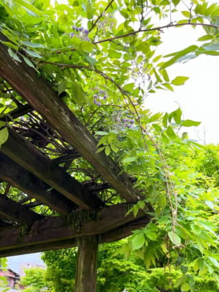 その後昼からは電話で催促があり友の会だより発送準備のシール貼るへトボトボ出掛けた。こちらも往き道でベスト電器にてSANYOのFAXのリボンを買う。既に会社がなく、すぐにはそのリボン見つからず店員さんと一緒に探し残る3コを全部購入。あと1年は持つだろうか?無くなったらもうFAXは使えないかも。昨日は脱走で手を焼かせてくれた猫のハナは今日は階段を通行妨害を身体を張って実行・・追い越すとまた先にいって横たわるので危ないこと。神水公園の藤棚の藤の花はこれから咲き始める様子だ。