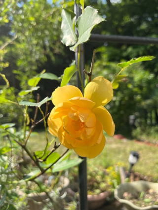 2022/05/07土   黄色い薔薇が咲いた。明日からキルト展のための搬入があるのでギャラリースペースを空けた。物置まで何度も行ったり来たり、朝方は森の中の草刈りと枯れ枝集めして、人が安心して通れるようにした。まだ小さな枝はありそうだ。椎茸栽培用の木は反対側の木陰に移動完了。最近、日当たりがよくなって、椎茸が芽を出さない。梅雨あけにはニョキニョキと顔を見せてくれるだろうか。明日は早起きしないとのんびりは出来ない。まだ片付けが残っている。連休もあけた熊本では736人と増加に転じた。前の週の1.9倍だ。困ったなあ。連休明けの日本のコロナ患者さんの増加は相当数増えるだろう。KSN総会は大丈夫だろうか?。なにはともあれ今日の歩きは驚きの10139歩、普段の目標の二倍になってしまった。只々キルト展の準備ばかりで我が山小屋周囲を歩いて獲得した歩数なのだ。散策にも行きたかったのになあ。  森の中は爽やかだ。風が吹き抜けると涼しい。今月は忙しくなる。