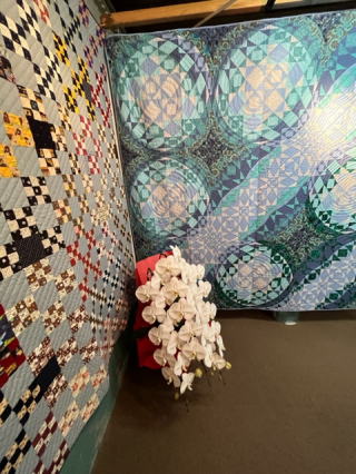 2922/05/15日   今日はお昼から天気が良くなる予報だったが、時々小雨もあって森の中のキルト展は綱渡りでなんとか一日持った感じだ。今朝熊日に載っていてyahooニュースにも出ていて、お客様は次から次へおいでになっていた様子。私はアメリカからの客人と知り合いの接待(たが弁当とお茶を出しただけ)で、さらにおまけのことも起こって、遠く高森からのお客様あってついでにキルト展をご覧になった。このキルト展も震災から復興された主催者の頑張りでの展示になっている。売ってくれないのなんて尋ねて叱られた方もあり、気力を込めた作品売れるものかという作者の心意気だ。  用事を済ませて下界へ帰る途上で、熊日新聞を購入。大きく出ていた。今回のキルト展に至る経過もちゃんと記載されている。今日は散歩をする時間もなかったが5153歩とはラッキー・・南区の自宅の机に帰り着いて一安心。右頬には西日が差し込む18:28JST。ご主人様は散歩に出掛けた。あとはのんびりしたいなあ。