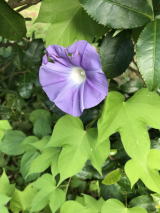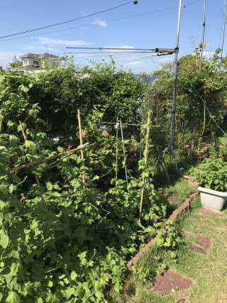 | 2018/08/12(日) | 相変わらずの日曜日・・台風の影響で雨でも降るかと思ったが、雨なし。風も殆どなしの暑い日となった。・・今日は予約もなくのんびりするかと思った時に電話あり・・おかげで合計6名のお客様となった。最近手際が少しよくなってきた・・といっても私の担当はサラダとデザートと飲み物だ。メインhご主人様が・・両手、両釜を使っていた。という訳で17時近くまで仕事に専念。気になるのは俵山文化祭の日取りだ。15日迄待ってきめるとするか。・・ 庭にでると青いアサガオが満開で咲いていた。種からご主人様が育て ているが、なんとか、全ての茎が生長してお茶の枝に寄生しながら色違いも咲いていた。庭の花壇にに目をやるとついこの前収穫したトマトのほうには新しい花が咲いていた。黄色い花だ。上に咲くと重たくなるので、下がよいと思うのだが、みんな上の枝から花を出していた。次の収穫まで2週間かかるだろうか。楽しみだ。 |