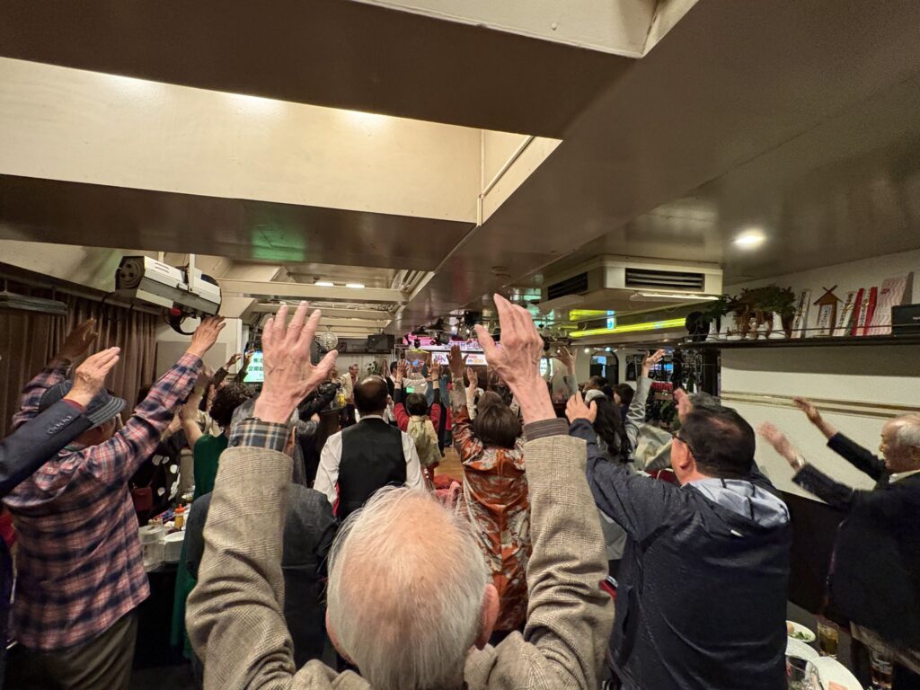 懇親会の最後はバンザイ!で終わる5月7日。天気晴れ。