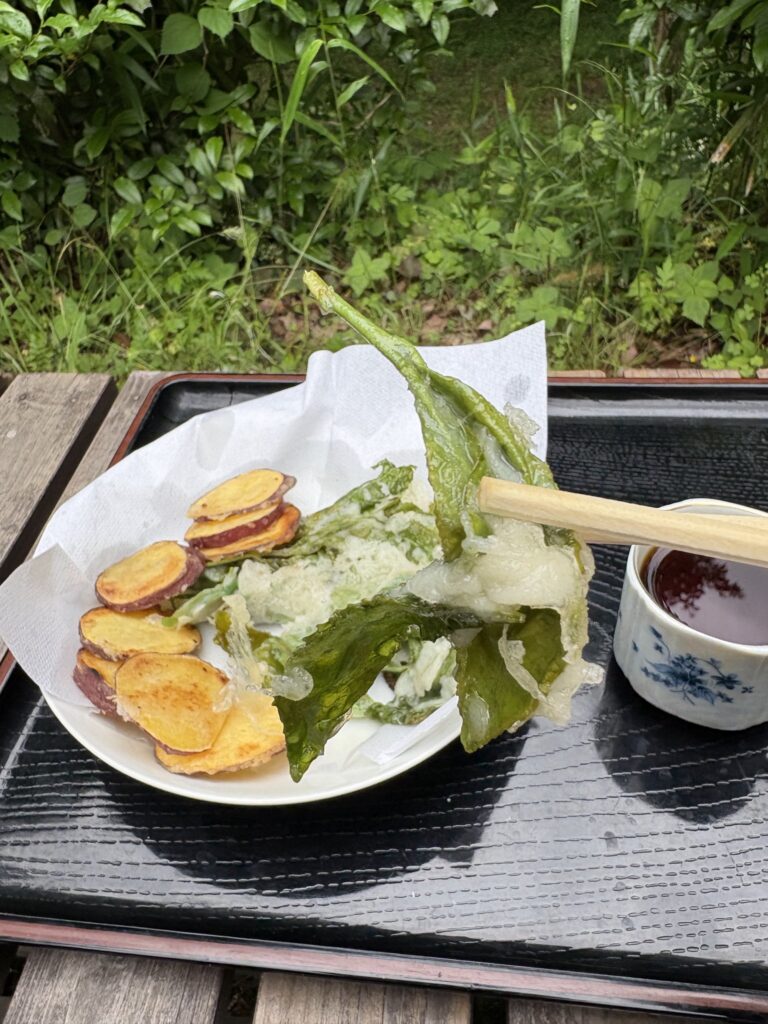 今日は南区から8時半に出発、山小屋には9時20分に到着。どうせ今日も天候が悪いのでお客様もないだろうけど、正直カフェなので、休めない。どうせ山ではPCを立ち上げて、過去データを探すだけだろうけどと、到着すれば、ついつい、お客様を待ち受けるための、サラダ作りに、デザートづくりを開始。ついでに生姜焼きの準備と、味噌汁も作った。下界でご主人様が作った料理も一緒に持参したのだった。が結局、お客様なし。それで庭のお茶っ葉摘みをすることに。youtubeで摘み方を予習して1芯2葉の原則をまねして摘み始めた。ついでに料理方法も真似てお茶の天ぷらを作ってみた、ちょっとした塩をぱらり。天ぷらは美味い。ついでに唐芋も一緒にあげてみた。一人で楽しむ茶摘みの一日になった。しかしひとりぼっちではつまらない。