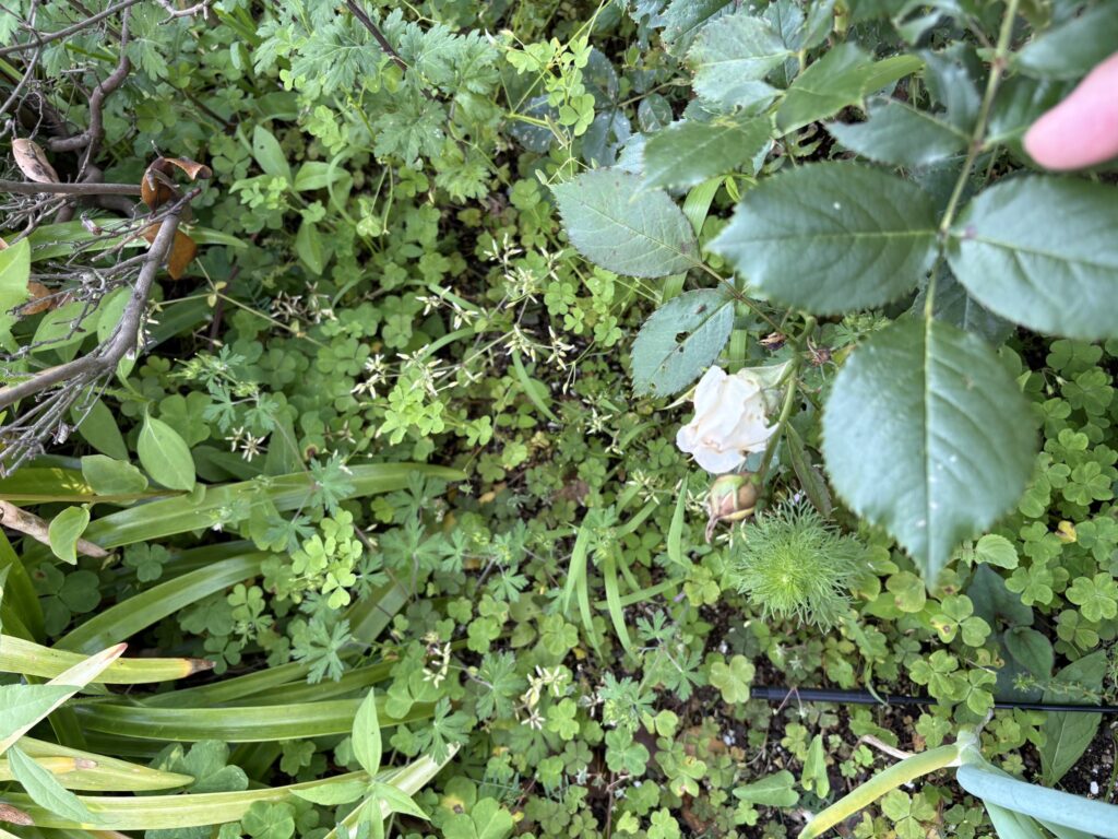 次に咲く薔薇は赤いのか?蕾状態が2週間も続いているだろうか、やっと蕾の中に赤いものを発見。白い薔薇は山に持っていって今満開に、赤い薔薇を下界の庭に植えたつもりだったが、この枝の下で初めて咲いたのは白い薔薇だった。ではこの赤みは何だろうか?↓5月12日の白く咲く薔薇