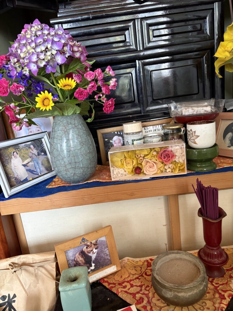 我が家の仏壇には妻の両親と我が両親の写真があり、先代飼い猫のチャメの元気な頃の遺影もある。その裏にはいろんな先祖などあるだろうが、写真で見えるのは現実の続きで、ちょっと前まではこちら側の人が画像で見えている。線香の煙も画像のあの世に居る先輩の上にも漂う。それこそ良寛の「散る桜 残る桜も 散る桜」拝む我らも散る桜には違いない。