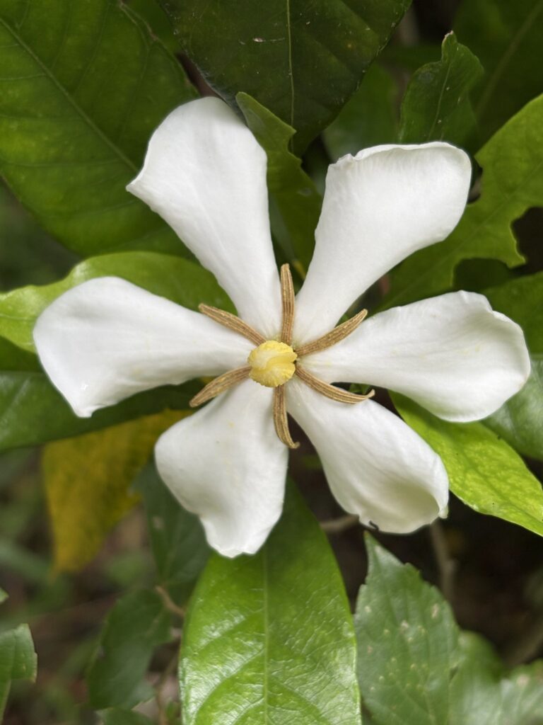 今開花している小さな花のクチナシはあまりきれいとは思わない。真ん中にタコのような形が寄生しているみたいに見えてしまうからだろうか、花びらいっぱいのこれから咲くクチナシが綺麗だと花音痴の私は思う。・・・・またクチナシの花にもどったが、このシンプルな花は茎を中心に風が吹くと風車になるかも。まずタコが飛んだあとのことを思い浮かべるとよい。