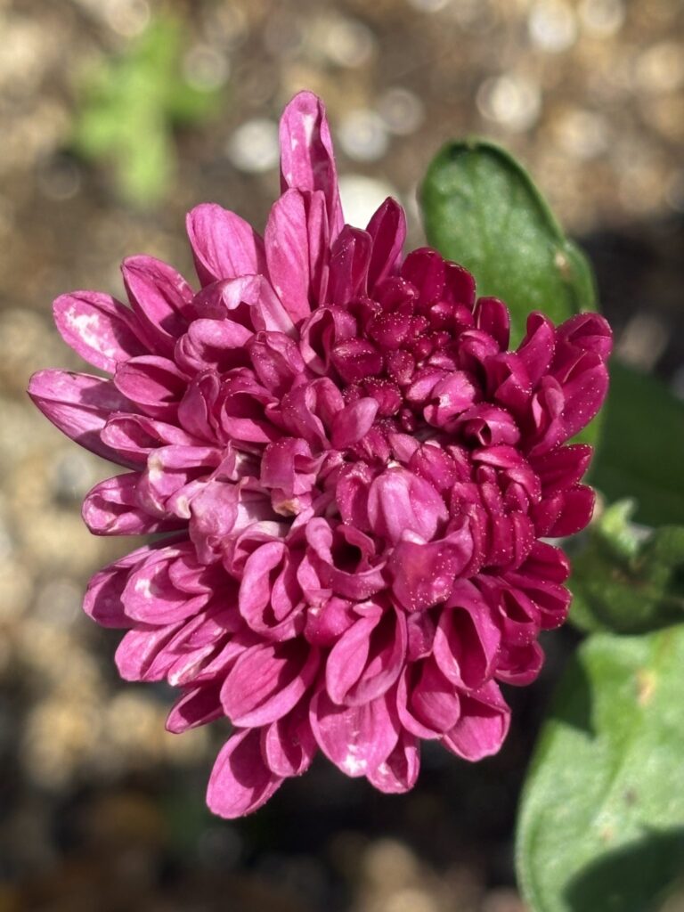 花弁が多いと手入れも大変だ。虫もいっぱい集まってくるだろうからその相手が大変。きめ細かすぎるので虫が入り込める隙がないほどの花弁数。実際に何枚あるか数えるほど暇でもないが、こんな花が、4本ほど順番に咲いている。シンプルな菊が夏場は涼しくてよさそうなのに、この厚着では、ちょっと辛そうだ。