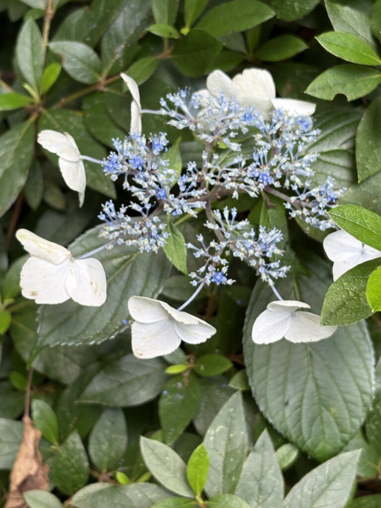 「ガクアジサイ」植物自体がこんな複雑な構造を作ったのか。大きな花びら小さな花びら・・梅雨の森には映えるが、梅雨明けには暑さの中で立ち往生・夏がこんなに早くくるとは・・計画になかったみたい。