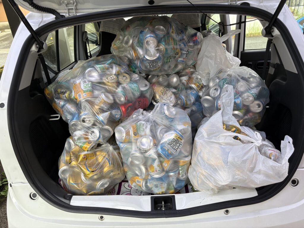 朝から今日も小雨だったか、病院受診して帰宅。午後のんびりとしているとご主人様から「空き缶運び」を手伝ってくれとSOS、ご主人様は足が悪いので今回は初めて助っ人に。これもボランティア活動だ。お金のない組織へのカンパで何年も続けている空き缶集め。アルミ缶が既に我が家の駐車場にいっぱいになったので、資源屋さんに持っていくことに。ガチャンガチャンとご主人様の軽自動車に積み込んで、私にとっては未知の世界へ。これ全部でいくらになるかな・・ご主人様は1000円ちょっとかと到着前に言う。で資源屋さんへ運ぶと15kgで2350円也。ご主人様は喜んでいた。