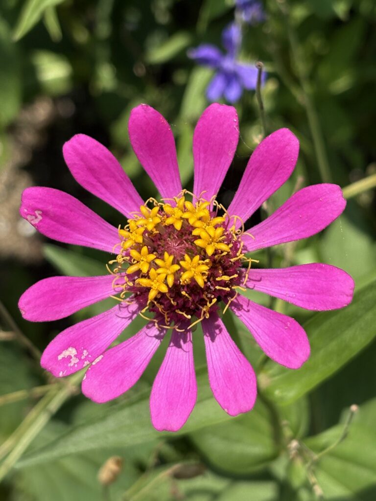 花の中に花があるような花=ヒャクニチソウ 百日も持つのだろう。経済的な花だ。