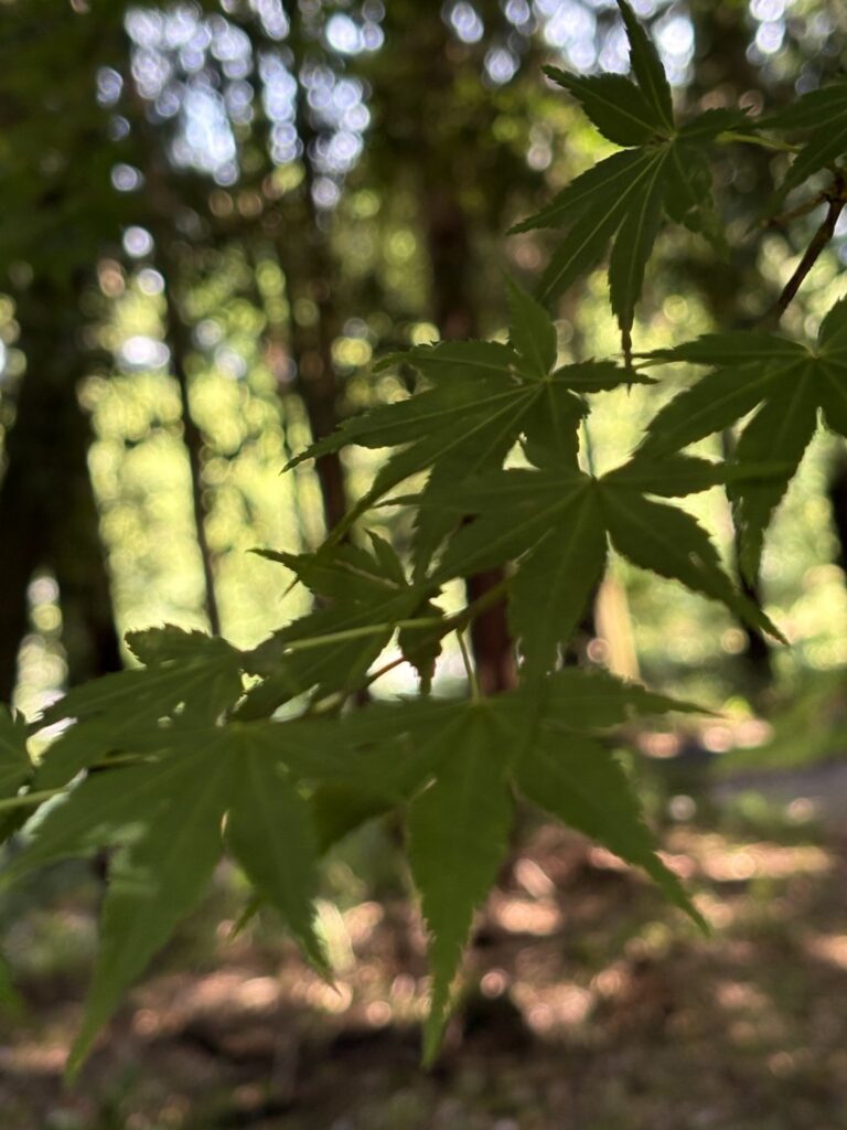昨晩は25度くらいで雨の後で涼しかった。今朝は天気もよくまた暑い一日になった。森の朝の庭を散歩。空には波状雲もあって、もしかしたらどこかで揺れるやら。