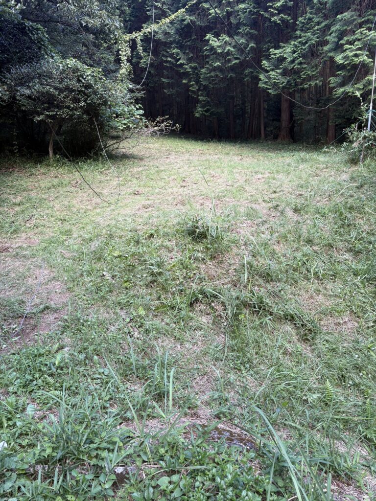 手抜きの草刈りはお客様を送った午後4時から、汗びっしょりになりながら。下界への帰りの時間も迫った頃なので、相変わらずの手抜きの作業だ。いつも下手くそな草刈りだと自画自賛(^o^) それでも草の量は減ったような雰囲気だ。夏の夕暮れの草刈りは特にヤブ蚊もあって、疲れてしまう。二階ではご主人様も猫のハナも束の間の居眠り中。