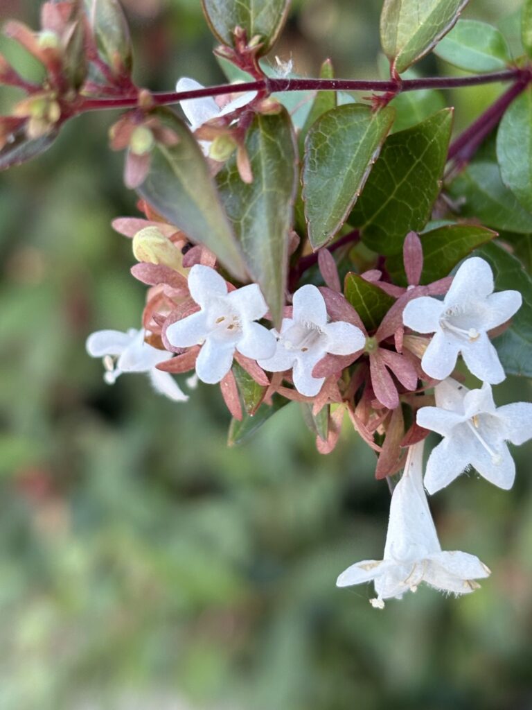KSN本部事務所は嘉島イオンモールの裏・・途上に綺麗な花が咲いていた。アベリアと言う花らしい。