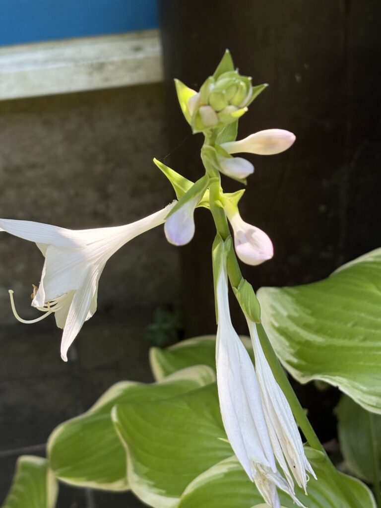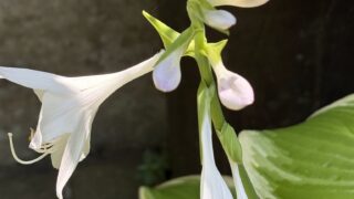 ギボウシの花の先はピンクが混じって見える。開いてしまうとよく分からないが蕾みの頃は色がついている。綺麗だ。