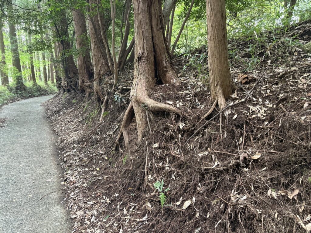 我が山小屋への道路づたいに生木の土手がある。あの熊本地震でもこの前のような線状降水帯がかかってもビクともしなかった自然の土手だ。20年前から殆ど変わっていない。ただ人間と同様に樹木の老化も考えると少し心配なところがある。土手を守る木々にはなるべく元気に長生きしてほしい。