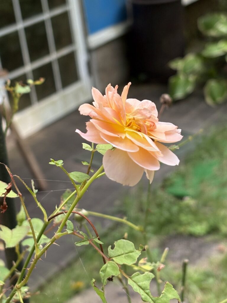 今日からは山小屋で全然お客様もこないギャラリーカフェの商い開始。その庭には薔薇の花が咲く。相変わらず蝉とゴロゴロと雷鳴だけの演出で、雨は降らず終わりそうだ。