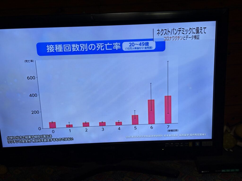 TVではコロナの予防接種の特集をやっていた。ある集団では25.3万人未接種 100万人接種・50歳以上は半分以上が接種。 眺めていると打った回数が多いほど死亡率が上がっているというデータがに注目した。初期の2年の死亡データがおざなり。きちんと統計を取るべきなのにされてない部分(ダークエリア):特に死亡の原因(死因と個体の持つ持病などの因子)が殆ど追求されていない様子である。不満を持つ遺族は多いだろう。