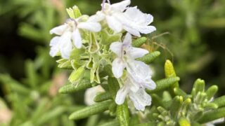 玄関の郵便受けの前の ローズマリーの白い花が咲いた。