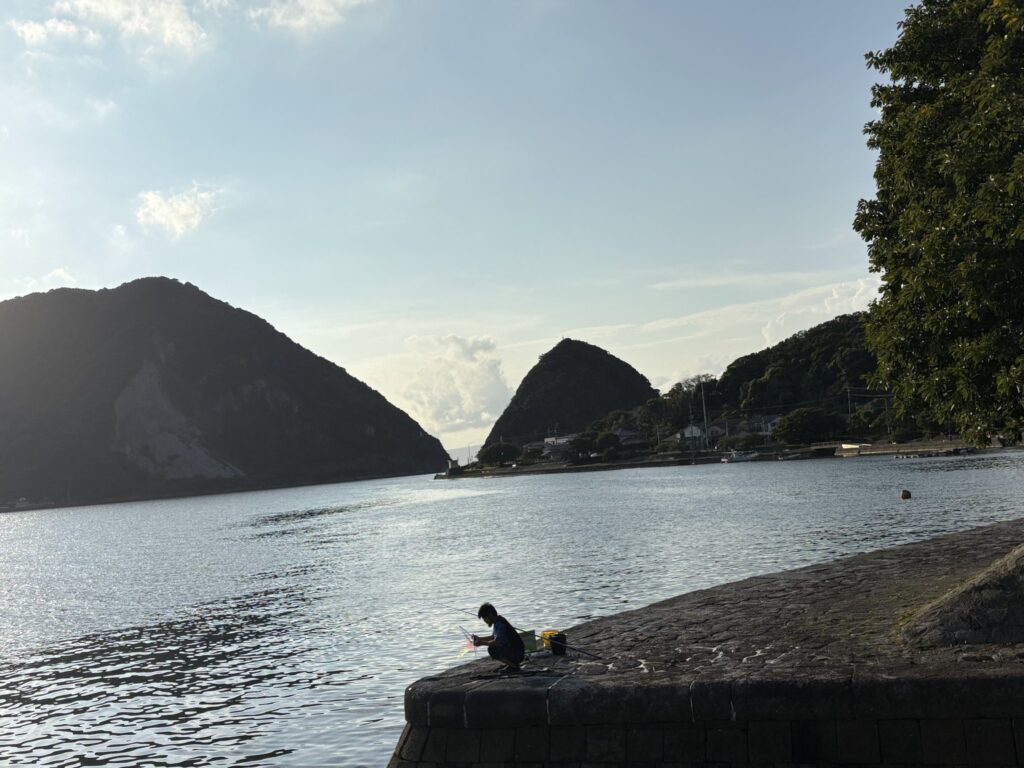 写真は三角西港の魚釣り人だが、その前に三角港の物産館で天ぷらとタコを買う。海のピラミッドを眺めて周囲の海の風景を写真に撮ってFACEBOOKへアップした。あとは順調に宇土半島をまわることに。