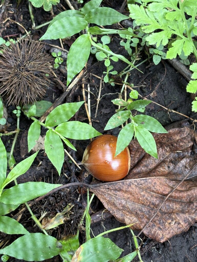 栗がコロコロ落ち始めた。閉じたままの毬栗が頭に落っこちてきたら危ない。栗の木の下では帽子は必需品。幅の広い麦わら帽子がよい。昨日お出でのお客さんに栗をあげたらよかったなあとサヨウナラの手を振って送り出したあとに、気づいた。