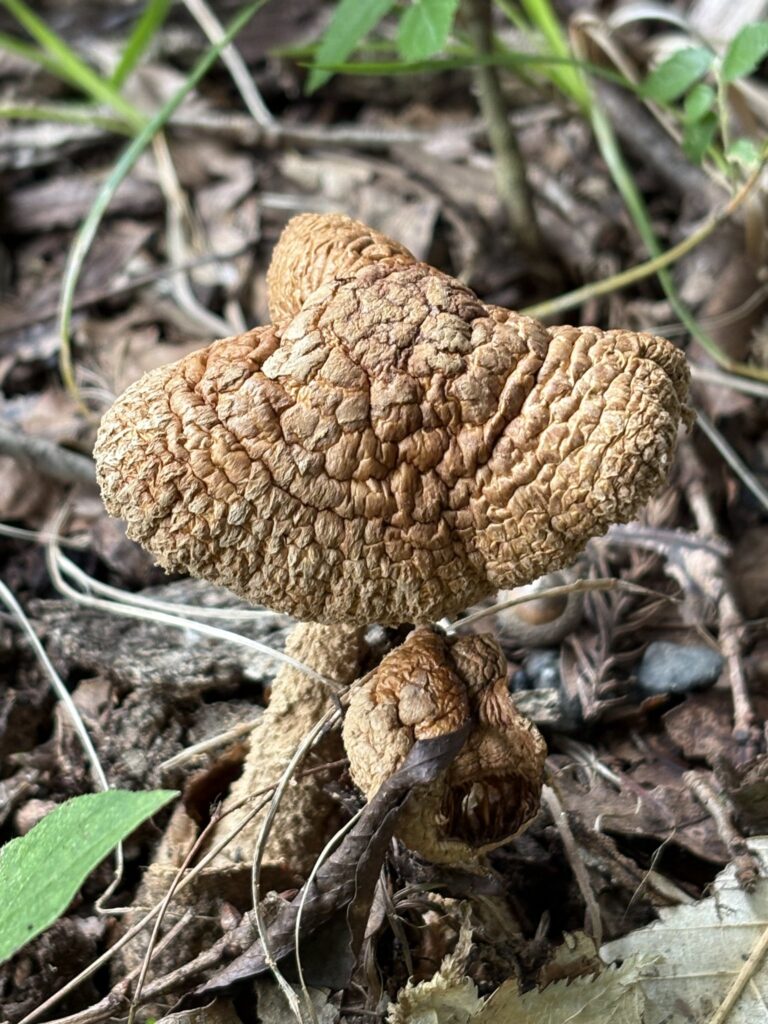 シワシワのキノコ。何だろうと調べるが何にも出てこない。風貌からすると生まれたばかりの年寄りキノコの様相。・・怪獣の足にも見える。きっと毒をもっているのだろう。