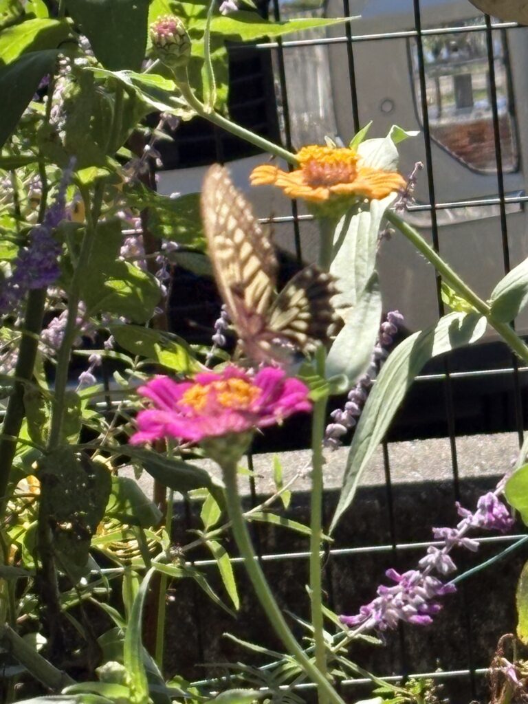 庭では蝶々が百日草と遊んでいた。まだまだ夏のような草がいっぱいだ。あと三ヶ月で正月になるとは 信じられない。いよいよこれから寒さが厳しくなるのだろう。