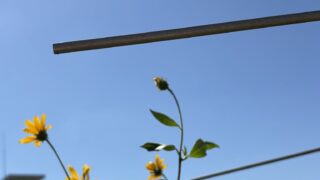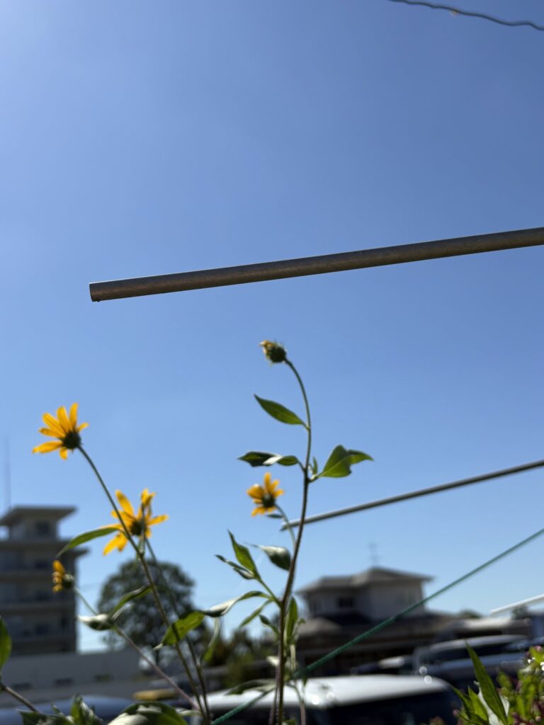 今度は菊芋が生長して我がアンテナを妨害し始めた。植物の生長は爺さんの趣味を取り上げてしまう。この前までアサガオにアンテナ盗られて貰い泣き だったのだ。