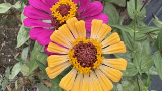 朝は少し寒かったか、鼻水がまたズルズルと出てくる。庭の百日草はそれでも元気に開いている。