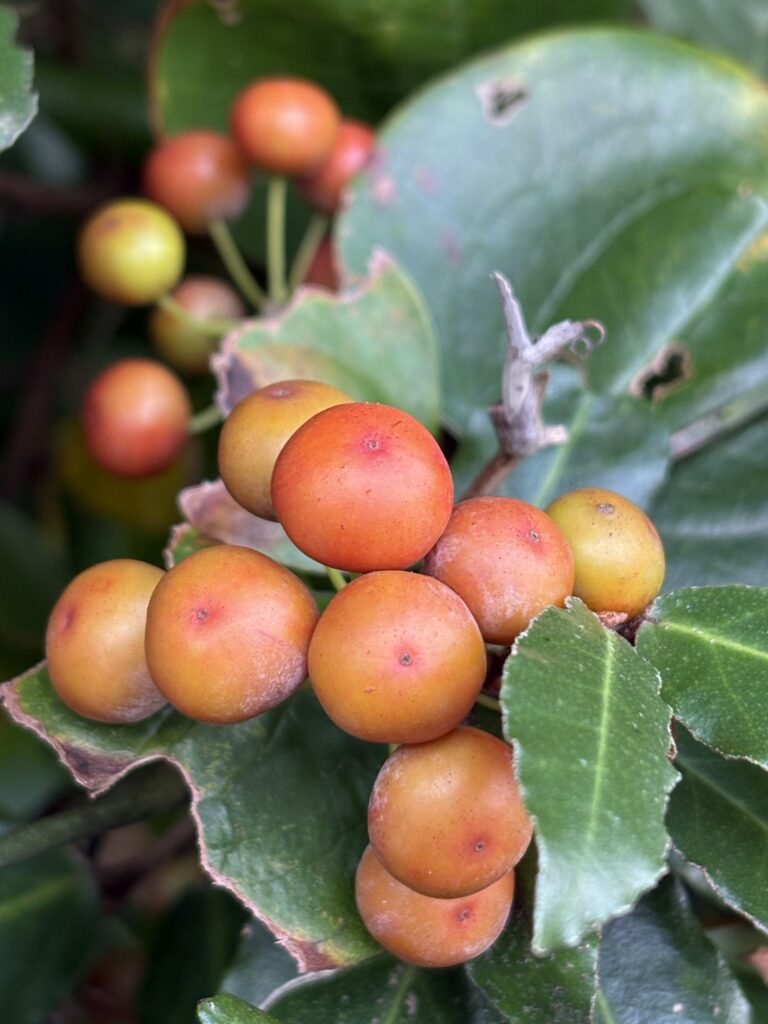 山はすっかり秋らしくなって赤い木の実があちらこちらに、それに冬莓が実をつけ始めた。これからは裏山には猪が現れる季節。バッタリ会わないようにラジオつけて、音出して(熊の対策みたい)。