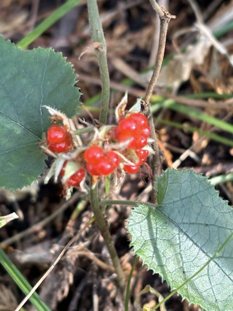 冬莓 人は気づかず 葉の下で 赤い顔して 一家団らん