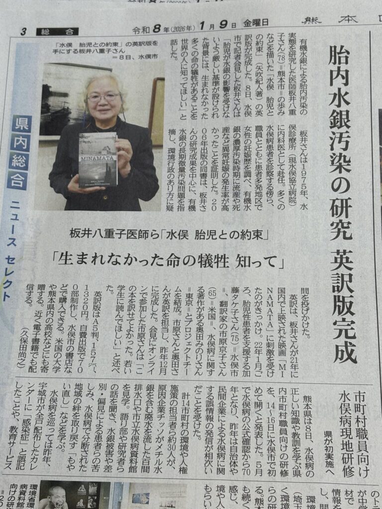 今朝、新聞を開くと板井先生の記者会見記事があった。この記事は我らKSNの仲間にとっても喜びだ。当たり前のことが、なされていない水俣のことを世界に知らせることは、水銀排出企業や国の政策など、長く放置され、汚染拡大を続けたというデータもあって説得力があるもの。