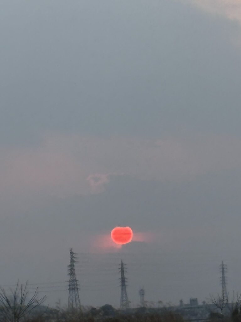 今日は忙しい一日だった。夕方洗濯物を入れ込む時も、ハナはサッときて瓦屋根散歩。もう掃除する気持ちも何処かにいってしまった。二階の我が机周囲の整理していたら、そこだけを綺麗にしようと頑張ってみた。17:32西の空には真っ赤な太陽が見えた、昨日の赤い夕空の正反対で、空はねずみ色の雲の姿、明日は天気が悪くなりそう。