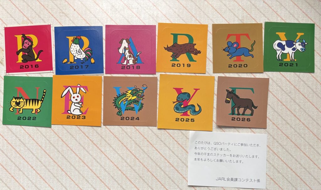 すると、1通だけ届いていた。まさに頭に浮かんだ封筒!だった。下手な見覚えのある宛名書きのJARLからの返信。申請時に返信封筒を入れたので、毎年こんな感じで返ってくる。12の干支を集めるためには、12年間QSOパーティに参加する必要がある。 始めたのは2016年、その干支は猿、熊本地震の年だ。そして11枚目の馬の今年。来年もぜひ参加して12枚目を得て一巻を完結させたい。