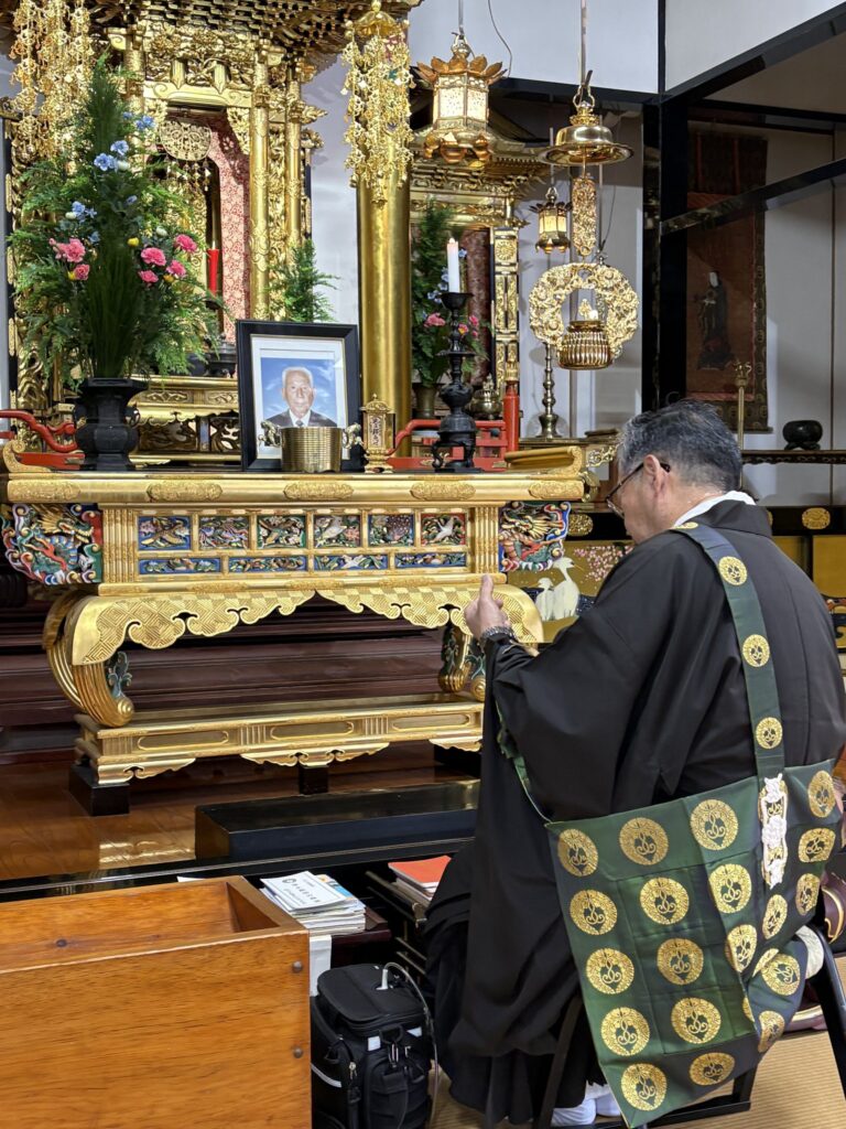 朝からバタバタして、約束の11時に間に合うかどうかといういつのもの大慌て。おかげで数珠やら杖やら、お返しやら、何でも玄関に積み忘れたままに出発。人間はちゃんと時間通りにつくかなという豊野から海東を走る頃、長谷川時間にしてはジャストではなく11時2分前には到着出来てホッとしたところ。やがてお坊さんが登場、数珠は姉に借りた、一家に1個の数珠、お坊さんには2人の手に数珠がないことを見られないように努力が必要だった。長い読経が終わってお説教、昼にはお茶を頂いて、様々な話を聞いて12時半にはお寺を出て、寿司屋さんへ移動した。