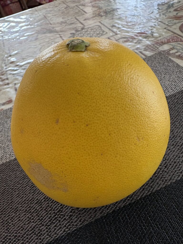 今年もポメロ到着 心待ちにしている人へ近いうちに送らねば。請求者4名ほどあり、ちゃんと届くように努力しよう。中にはまるごとジャムにするという方もある。皮ごとジャムにできるのかな。デコポン農家にも一個渡した。ちょっと酸味と甘みでザボンに似た味だ。
