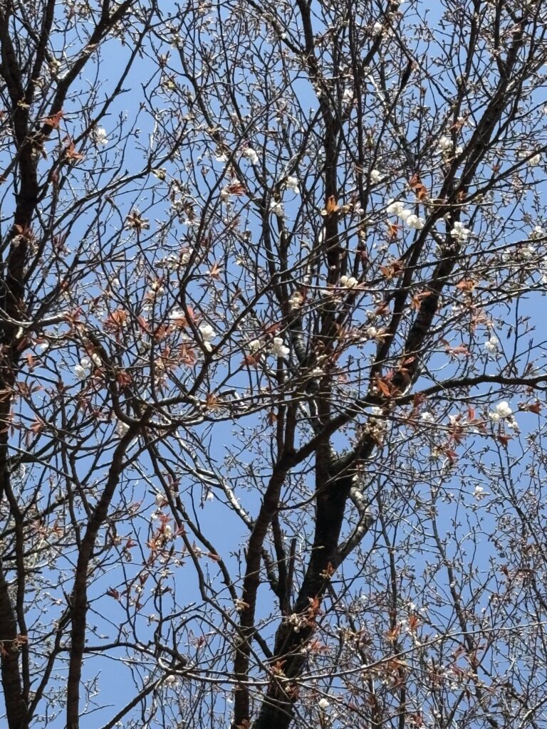 山桜が咲いた。2年前は同じ3月15日に満開だったのだが、今年は冷え込むので、ちょっと遅くなっている。彼岸桜も赤く満開だったが今年はまだ花の蕾も見当たらない。