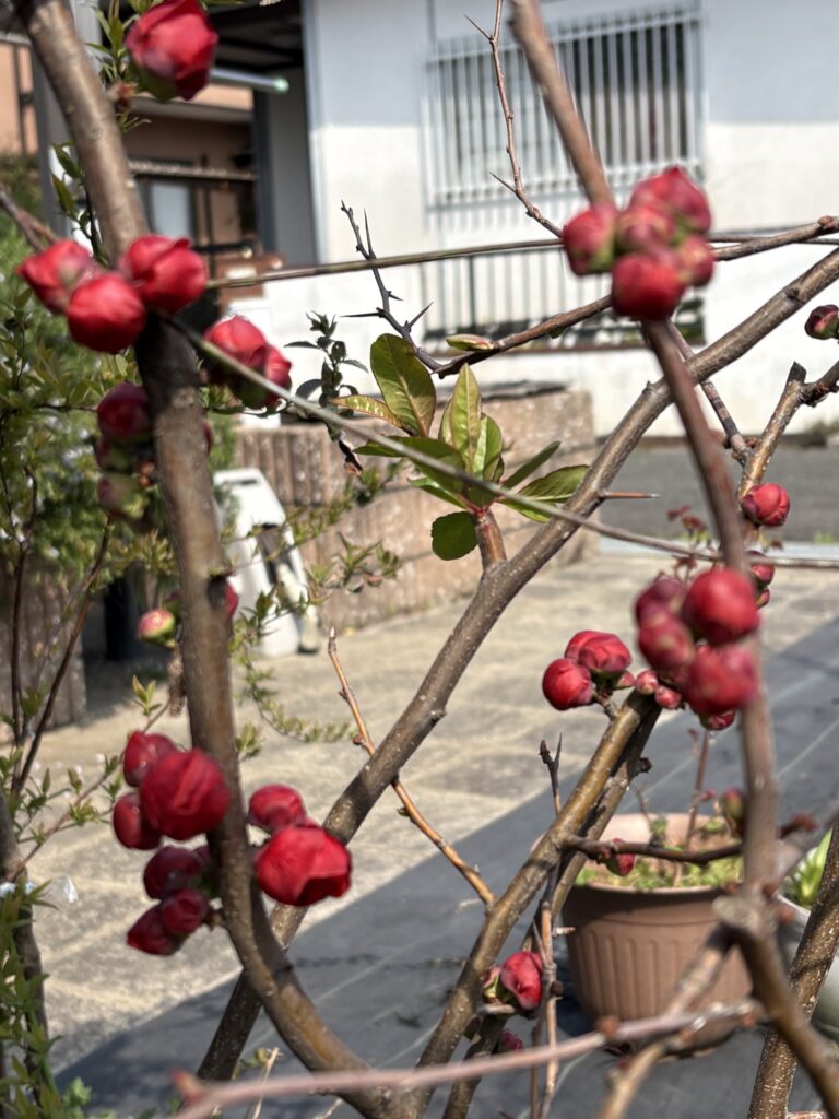 先日10日に小川の実家に行ったとき木瓜の花は咲き誇っていたが、ここ南区ではまだつぼみが膨らまない。特に今年は遅い様子、昨日までの俵山麓の山小屋の庭にある山桜も満開は来週くらいかな。体感的には今年が寒いような気がする。