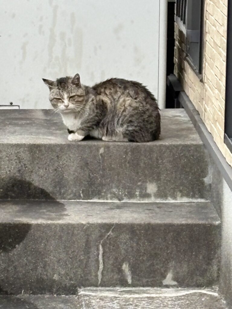 小さいくせに貫禄ある顔した野良がご飯を待っていた。私はハナを抱えて散歩で対面。雨降りの野良は濡れながらもご飯を食べにやってくる。今戦争中で、水や燃料が止まっている国の難民を思う。戦争は誰のため?それで肥え太る軍需産業の株主ら・・今日も株が上がっていた。なんで?と思う。それを認めるのも戦争から遠い国に住む市民。一方の地では栄養失調で生きられない子ども達が溢れている。そう書く私は布団の中で足を温めて雨音を聞いている。なんてことだ!