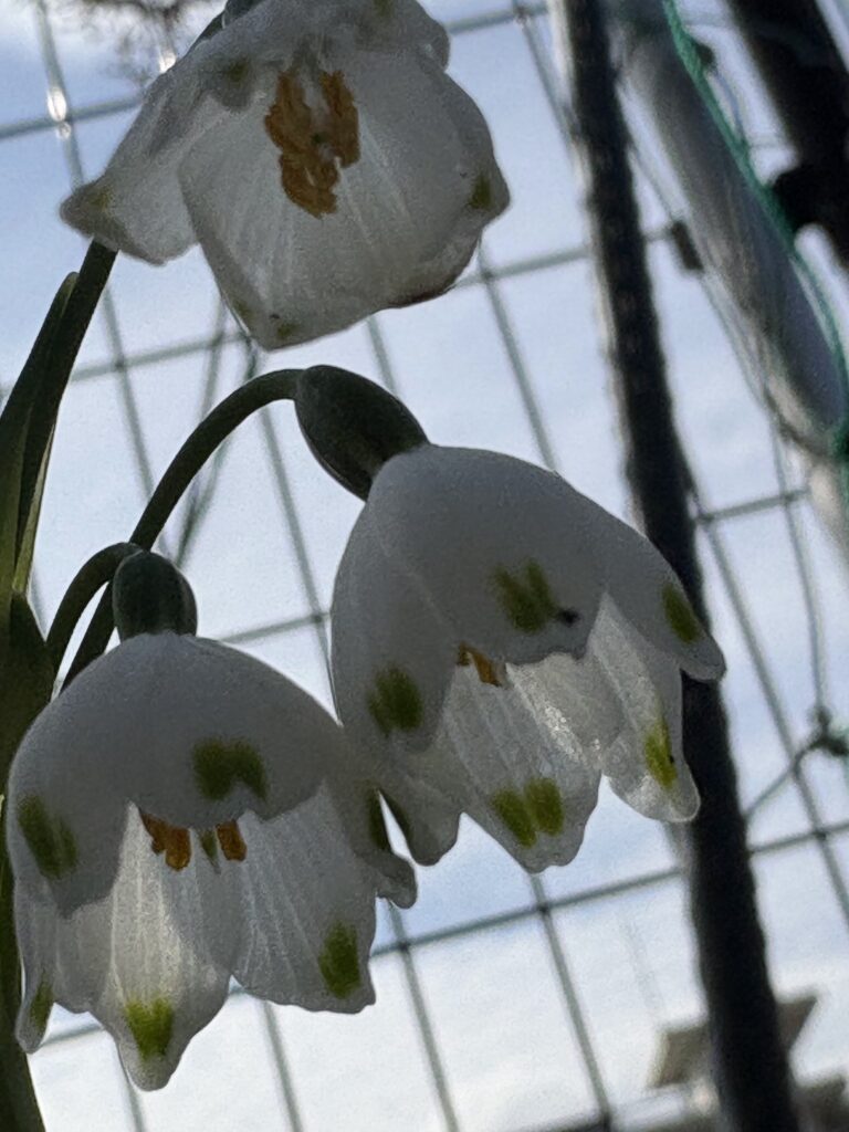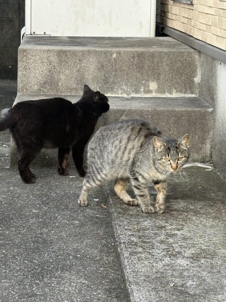 雨上がりの今朝、仲良しの野良の二匹、我が家のハナが喧嘩腰で毎日相手していて、裏口の金網が破れそうだ。